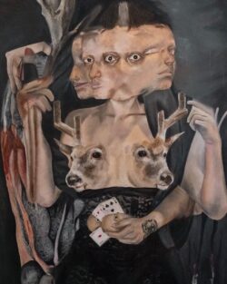 Antonean Diaz, a multidisciplinary artist of Belizean and Persian heritage, works in painting, sculpture, and performance. Raised in Iran and now living in Paris, she explores personal history, cultural duality, and diasporic memory. Her work combines classical techniques with experimental, symbolic imagery that is intimate, dreamlike, and reflective.