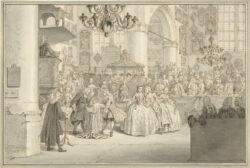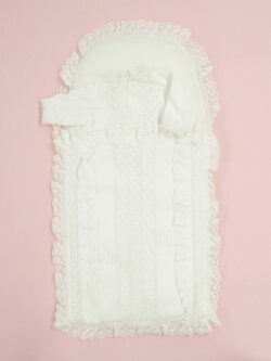 Since the early Middle Ages, it was customary in the Catholic church to have a child baptized as soon as possible after birth. In this region, newborn babies were tightly swaddled with bands and cloths until the age of three months. The newborn child was also swaddled in this manner during baptism. In noble and affluent bourgeois families, the child to be baptized would lie in a costly bearing cloth or christening blanket. This is a blanket or swaddling cloth, often in white linen or ivory silk, decorated with embroidery or lace. In Christian teaching, white has symbolized purity and innocence since the Middle Ages. The colour emphasizes the purity of the newborn baby.
