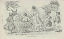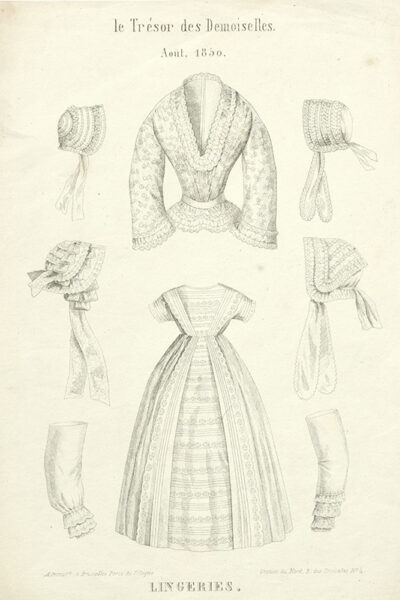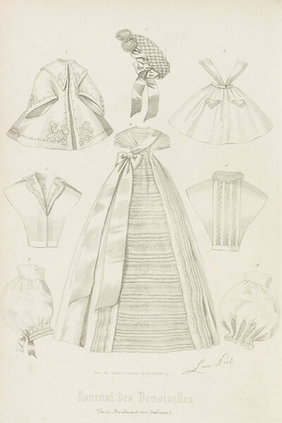 Illustrations of christening gowns – and, by extension, baby gowns – are relatively rare. This is probably because little changed in the appearance and cut of the christening gown: it typically consisted of a short bodice with short sleeves and a long skirt. Differences were found mainly in the decoration, which closely followed contemporary women’s fashion. Moreover, christening and baby gowns did not distinguish between boys and girls. Nevertheless, the influence of 19th-century fashion magazines on the emergence and dissemination of christening gowns should not be underestimated. For example, the trendsetting Le Journal des Demoiselles was among the first magazines to publish engravings of babies wearing christening or presentation gowns in the late 1850s. The latter were worn when receiving visitors after a baby’s birth and on other formal occasions.