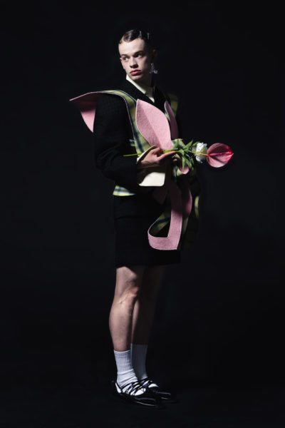Ching-Lin Chen is a Taiwanese-born designer and Antwerp Fashion Department student, who – after landing a fashion degree in Taiwan – got his first industry experience working at luxury brand Shiatzy Chen producing Paris Fashion Week shows. Today, Ching-Lin has graduated from the third Bachelor year in Antwerp with a tiered, gender-unrestricted collection titled “Where have all the flowers gone”, a sculptural, multi-layered vision featuring a limited accessory collab with feted Antwerp alum Niels Peeraer.