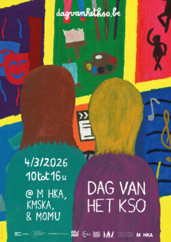 Tijdens de Dag van het KSO nodigen vijf Antwerpse kunstscholen - de Kunsthumaniora, AVANT, Sint-Lucas, Sint-Jozef OV4 en de Kunstkaai - je uit om mee kunst als verbinding te vieren. In drie Antwerpse musea - MoMu, KMSKA en M HKA - tonen de leerlingen en leerkrachten hoe kunstonderwijs verbindt: tussen disciplines en generaties, tussen ideeën en mensen. Verwacht een dag vol openheid, ontmoeting en artistieke energie.