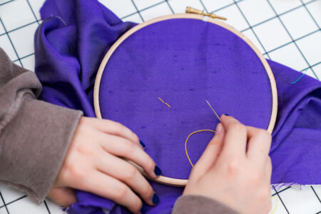 Net als in de tentoonstelling Embroidering Palestine gaan we aan de slag met de kruisjessteek en leren we samen hoe je met naald en draad mooie figuurtjes kunt maken op stof.