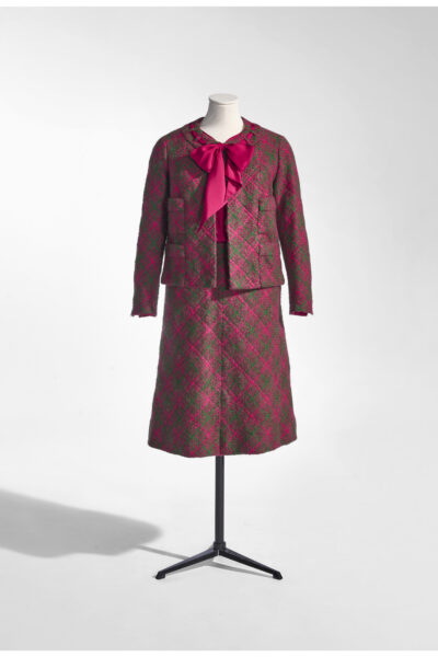 Paola Ruffo di Calabria (1937) was de jongste dochter van een Italiaanse adellijke familie met zeven kinderen. In 1959 huwde zij met prins Albert van België, de broer van de Belgische koning Boudewijn. Tijdens de regeerperiode van koning Albert II (1993-2013) kwam koningin Paola’s passie voor kunst en cultuur naar boven. In 2006 schonk ze, tijdens een informeel bezoek aan MoMu, enkele mantelpakken van Chanel, en later een japon van Valentino. Een schenking van een regerende vorstin is uniek: veel monarchieën – ook de Belgische – beschouwen koninklijke kleding als persoonlijk bezit. In Nederland en België bestaan er wel koninklijke collecties die belangrijke historische kledingstukken bewaren. Een specifieke gebeurtenis kan een kledingstuk historische waarde geven, maar het is niet vastgelegd welke momenten dat zijn.