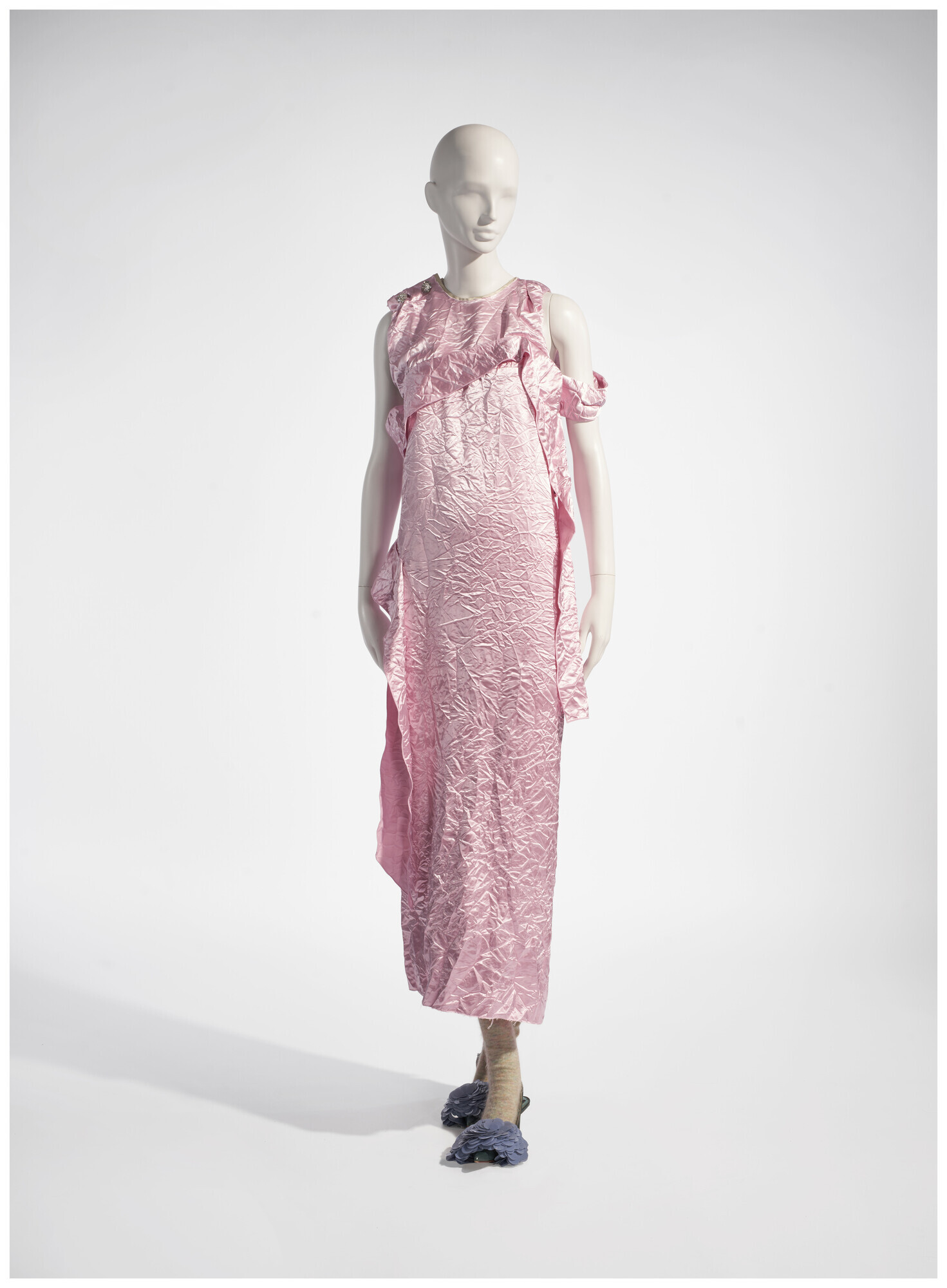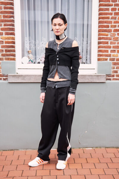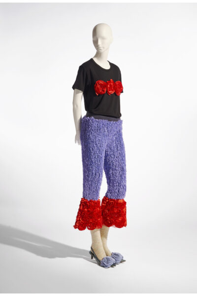 Uit Meryll Rogges onconventionele collecties spreekt een grote liefde voor maatwerk, vintage, glamour en kunst. Componenten die ze stuk voor stuk deconstrueert, vermengt en herverdeelt. Voor de installatie DO NOTHING CLUB in MoMu's collectiepresentatie in 2024, werkte ze samen met de Zwitserse kunstenaar Beni Bischof. Daarnaast bewaart het museum ook representatieve ensembles uit Rogges oeuvre.