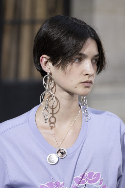 Ook in de accessoires trekt Rogge het spel met oude en nieuwe herinneringen door. Voor de lente-zomercollectie 2026 vond ze een gelijkgestemde partner in Wouters & Hendrix. Het juwelenhuis creëerde zilveren kraagjes, juwelen met oversized parels of glanzende lussen en sieraden waarin je kleine foto's kan bewaren.